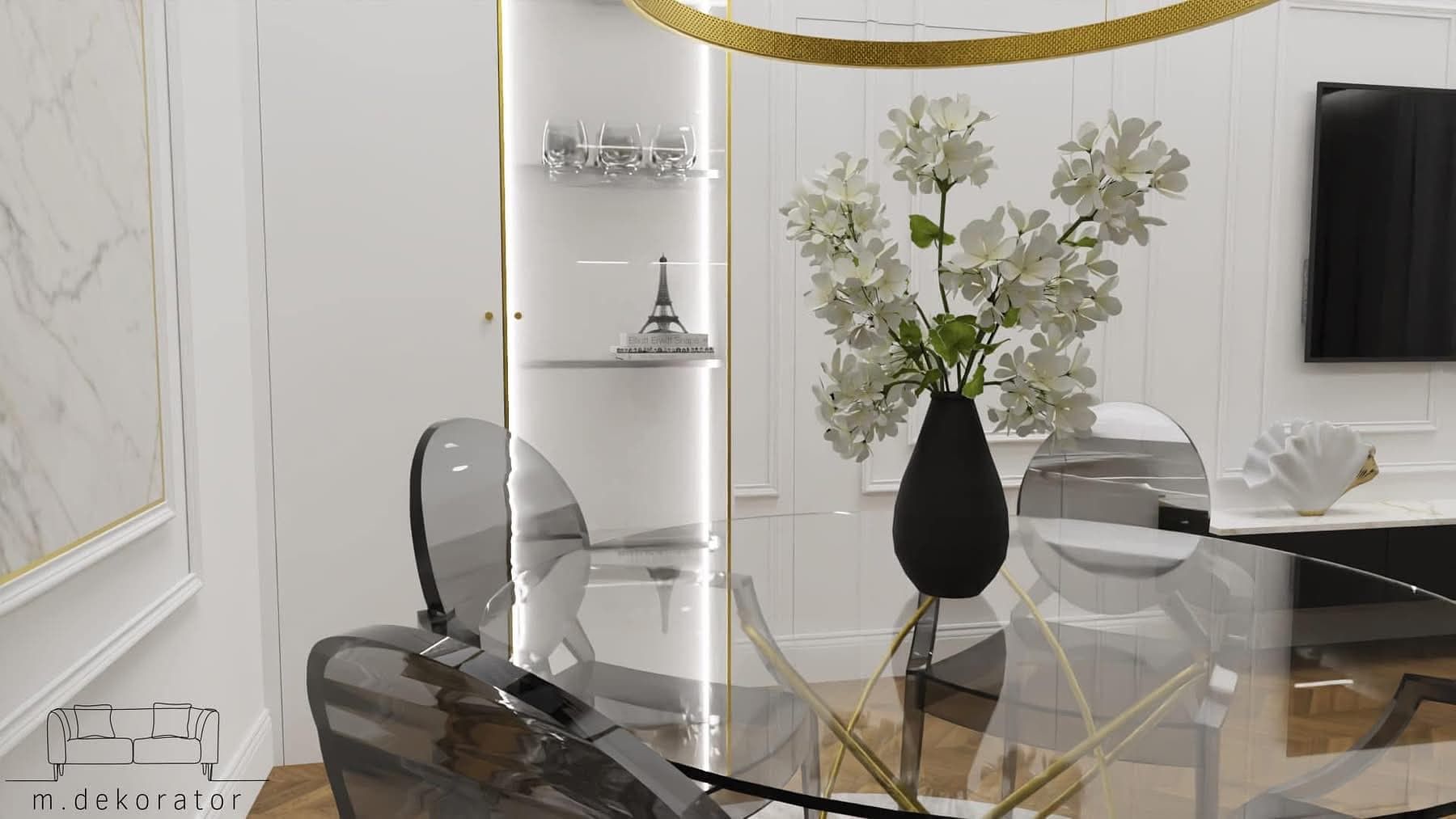 Wnętrze jadalni z drewnianym stołem, białymi talerzami, styl japandi, nowoczesny i tradycyjny. 8 zdjęć w projekcie Zobacz projekt