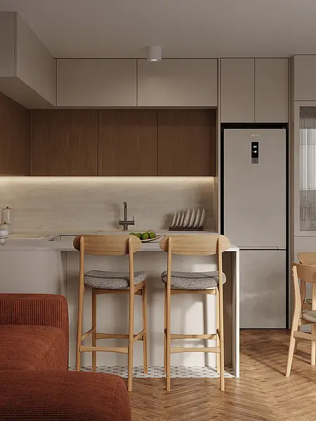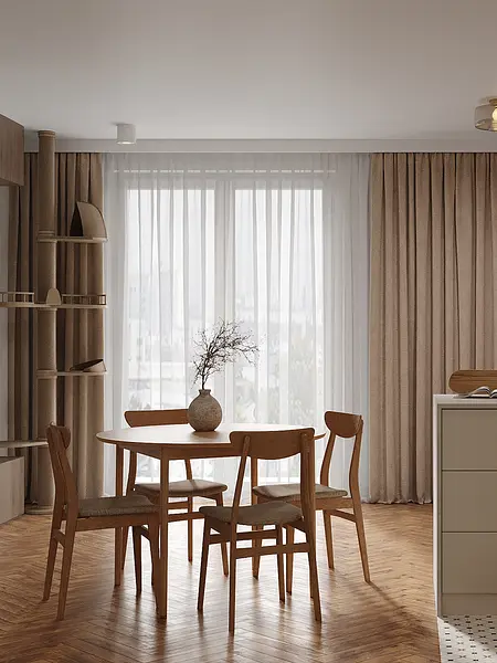To jeden z tych projektów, w których wiele decyzji zapadało niemal odruchowo dzięki bardzo dobrej komunikacji. Klienci przyszli do mnie z konkretną wizją na swoje wnętrze, a moją rolą było ją uporządkować, doprecyzować i przełożyć na spójną, funkcjonalną przestrzeń.