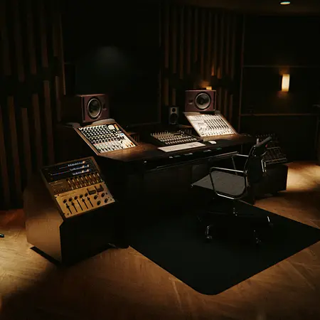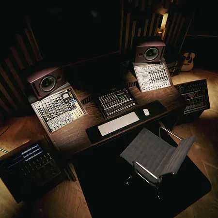 Projekt wyjątkowego studia dźwiękowego, zaprojektowanego tak aby osiągnąć najlepsze doświadczenia z odsłuchu. Specjalnie zaprojektowane biurko z szafkami bocznymi według preferencji klienta, dla poprawienia ergonomii oraz wygody pracy. Spokojny nowoczesno-minimalistyczny styl wykończenia z nutą luksusu. Przyjemny ciepły klimat i wieczorowe oświetlenie wprowadzajcie otulający miły klimat do pomieszczenia.