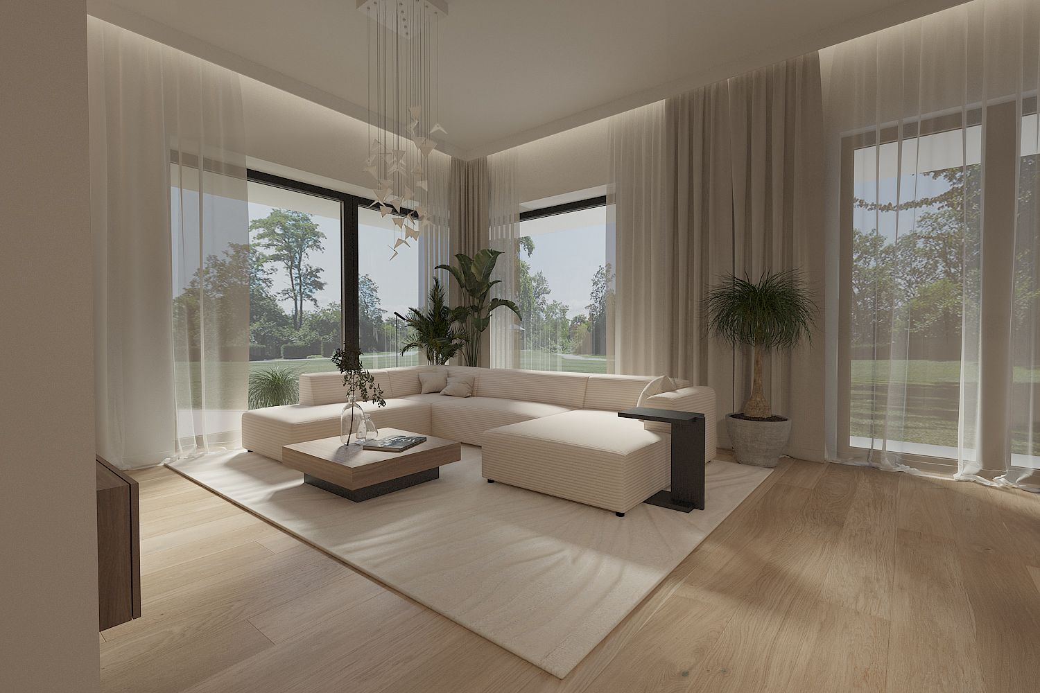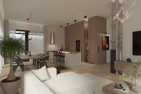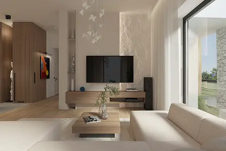 Nowoczesne wnętrze salonu w stylu japandi z drewnianymi akcentami. 11 zdjęć w projekcie Zobacz projekt
