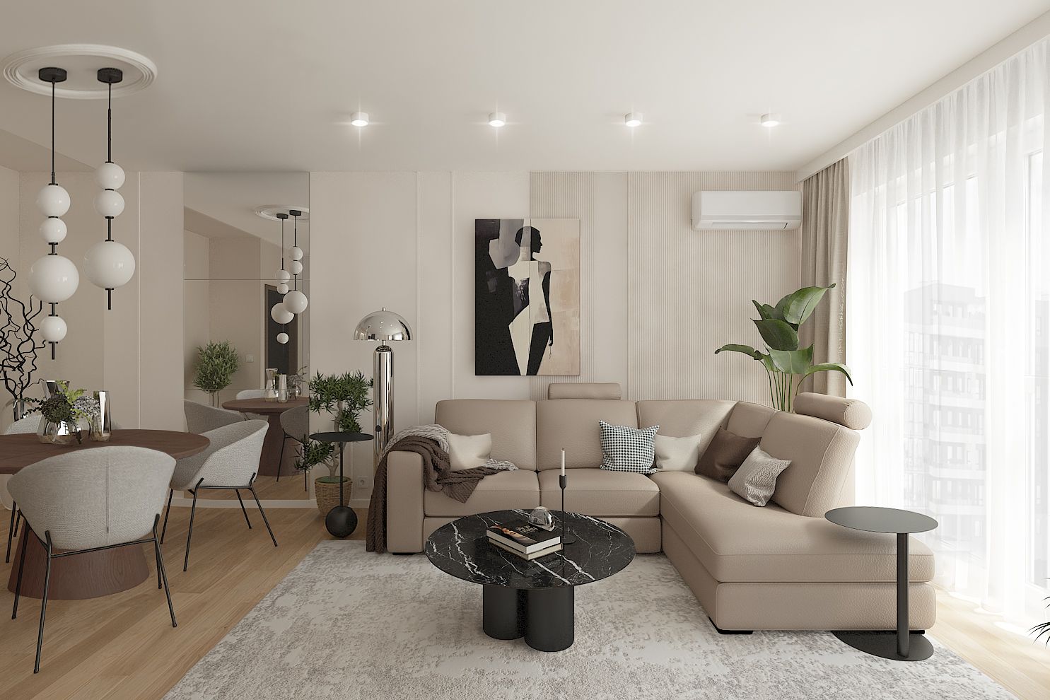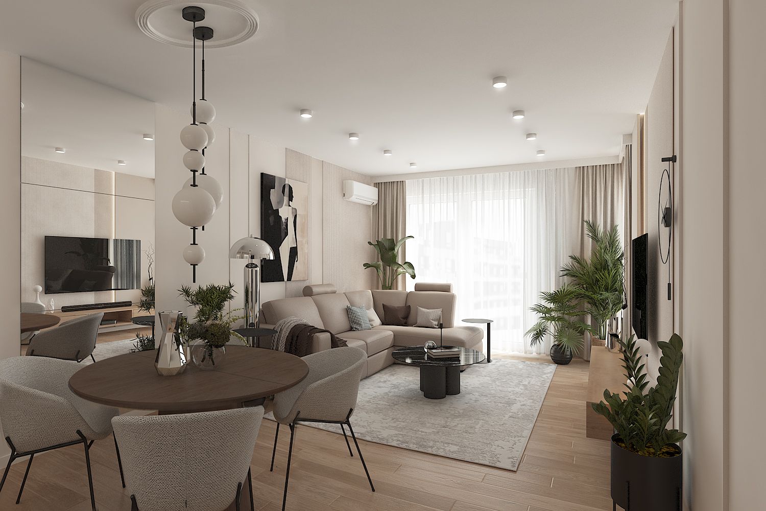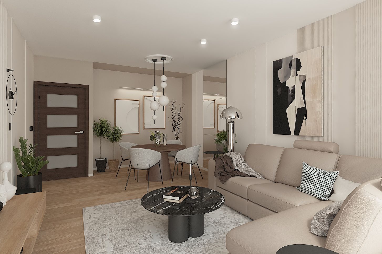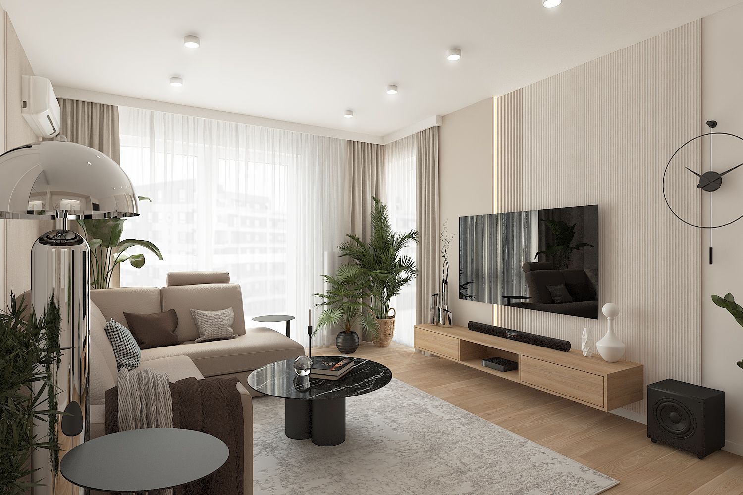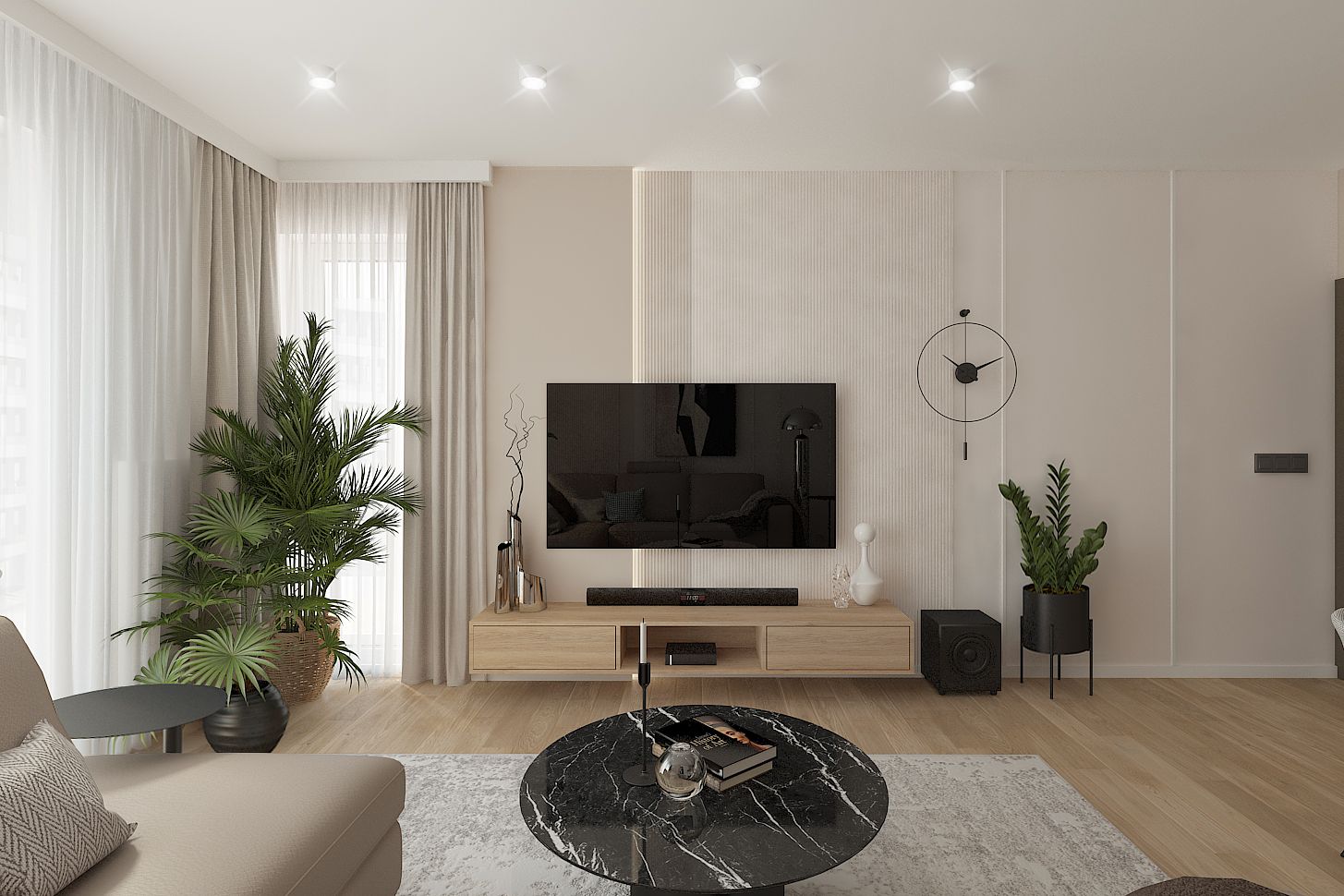 Nowoczesne wnętrze salonu w stylu japandi z drewnianymi akcentami. 11 zdjęć w projekcie Zobacz projekt