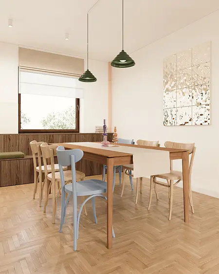 Eklektyczne wnętrze jadalni z rustykalnym stołem, prowansalskimi dodatkami i tradycyjnym wystrojem. 19 zdjęć w projekcie Zobacz projekt