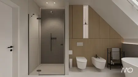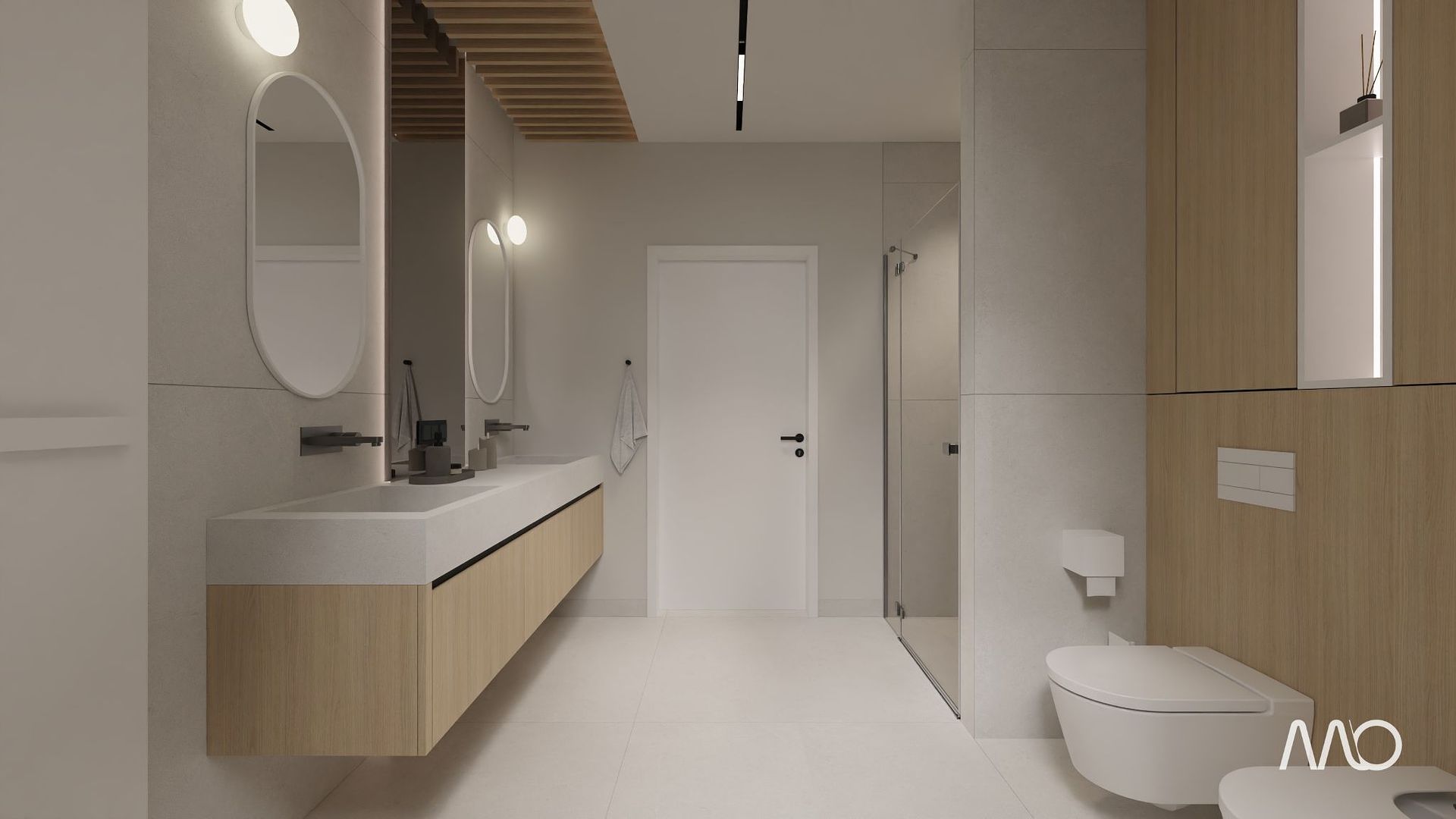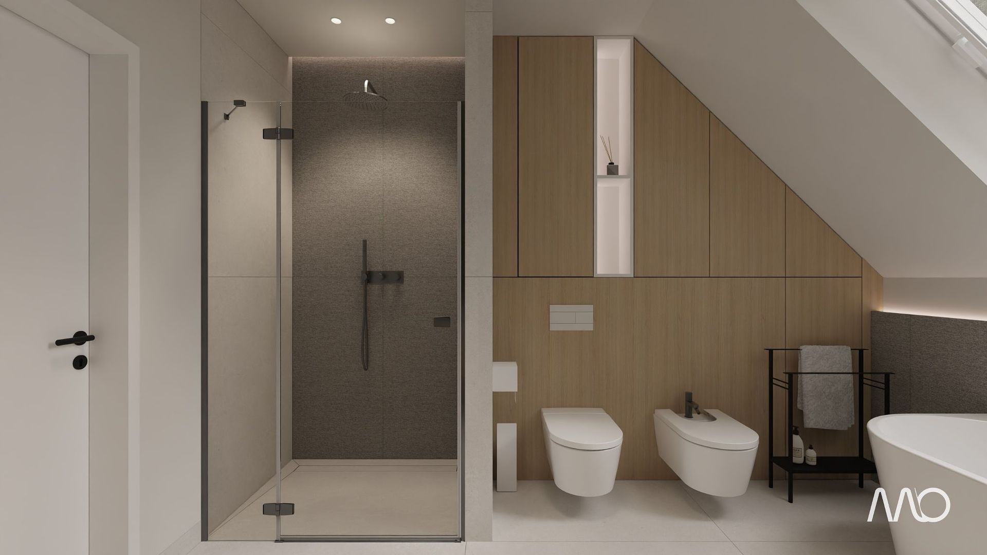Aranżacja łazienki w której kluczową rolę odgrywa przemyślany dobór materiałów oraz stonowana kolorystyka.