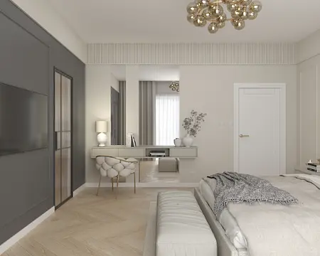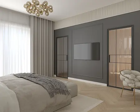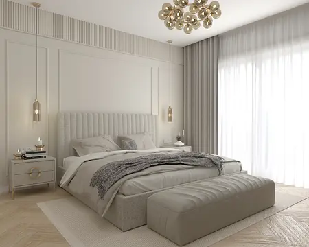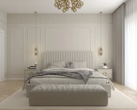 Ta sypialnia to połączenie harmonii i wyrafinowania.