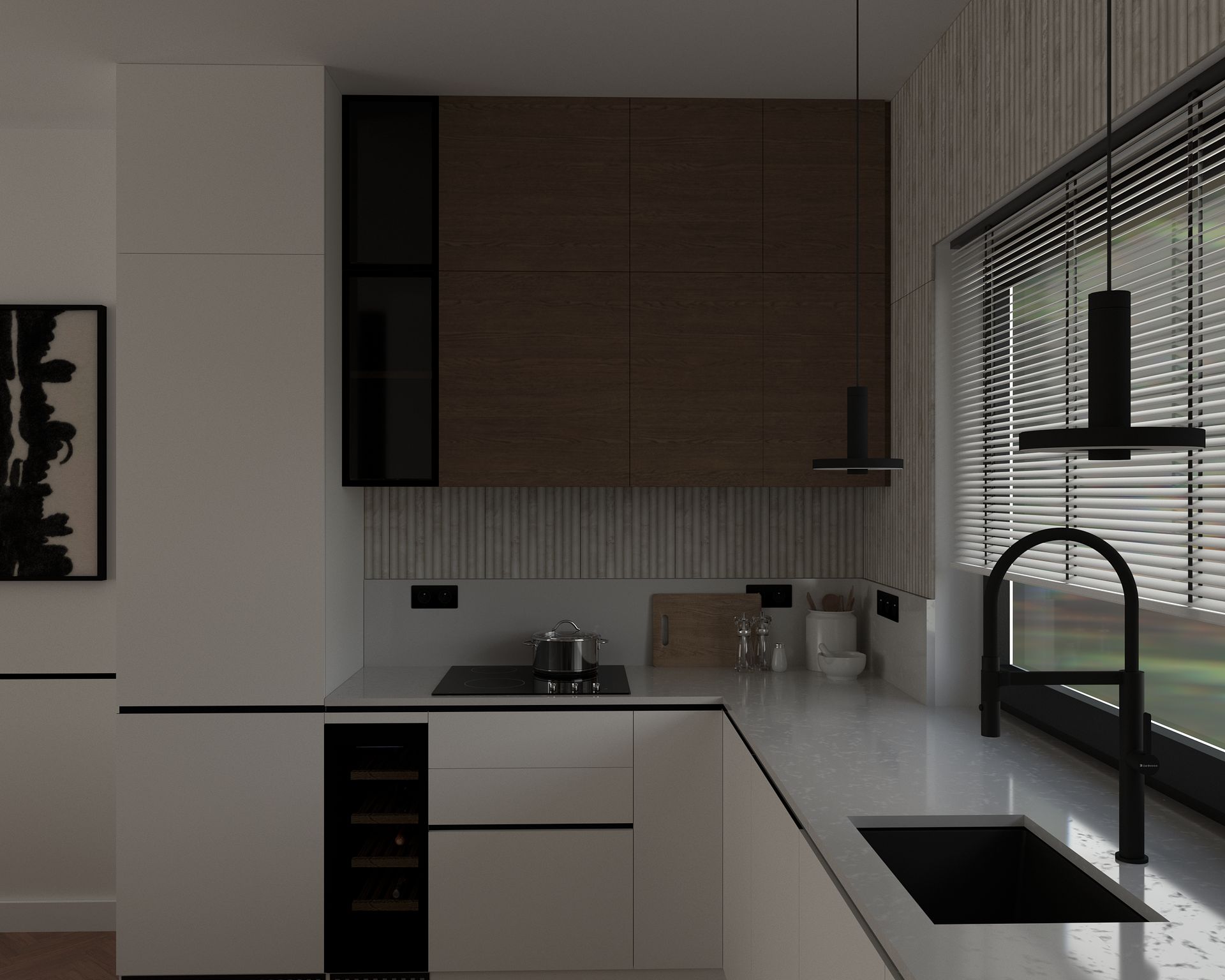 Nowoczesna kuchnia z marmurowym blatem i białymi meblami w stylu glamour. 6 zdjęć w projekcie Zobacz projekt