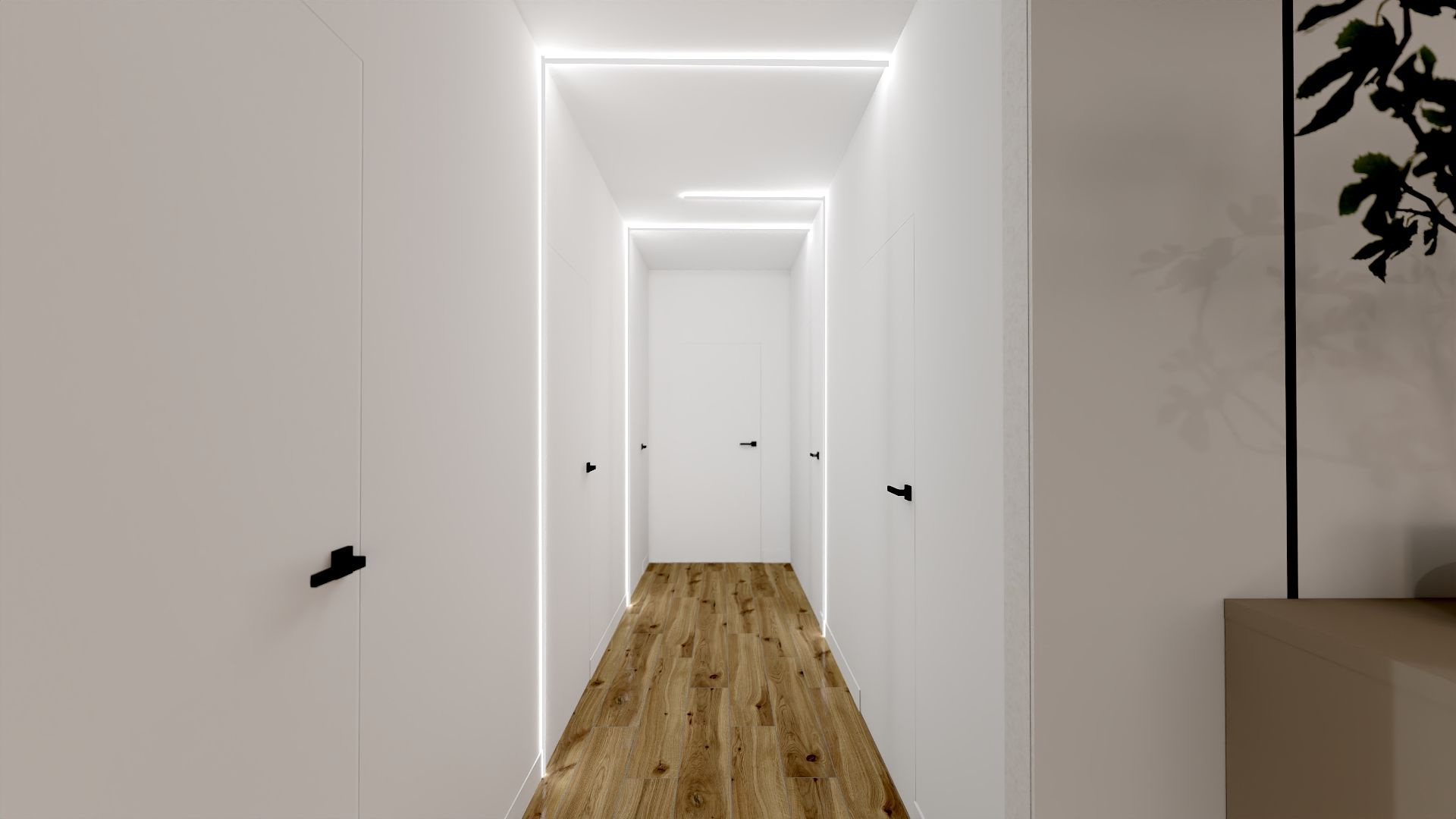 W galerii jest pokazana również druga wersja tego samego pomieszczenia, dużo jaśniejsza i bardziej doświetlona.