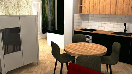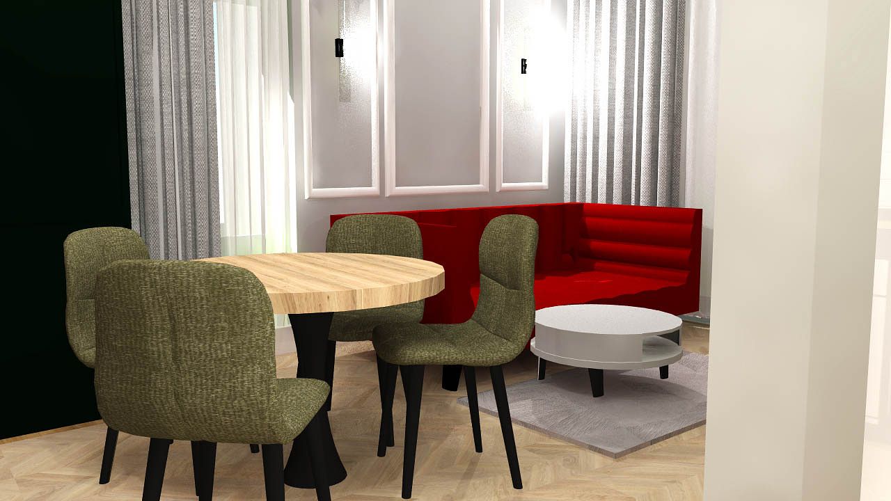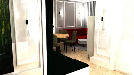 To wnetrze jest przykładem połączenia i gry kolorów we wnętrzu. Żywe nasycone kolory to propozycja dla miłośników butelkowej zieleni, czerwieni oraz szarości. Dla tych co nie lubią nudy. To przyklad niewielkiego 4m dla singla bądź pary. Jeśli urządzasz mieszkanie dla siebie i swojej połówki lub wykanczasz mieszkanie inwestycyjne- napisz do mnie. Chetnie zaprojektuje coś indywidualnie dla Ciebie.