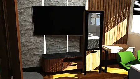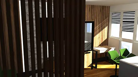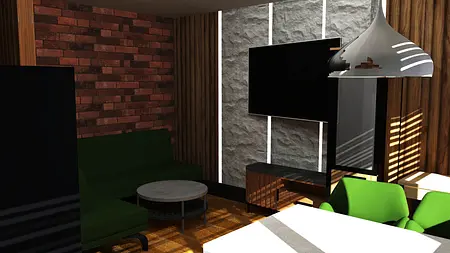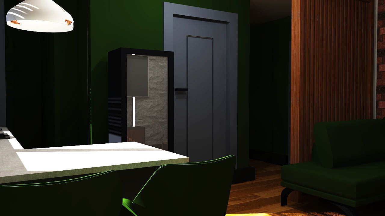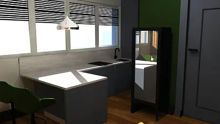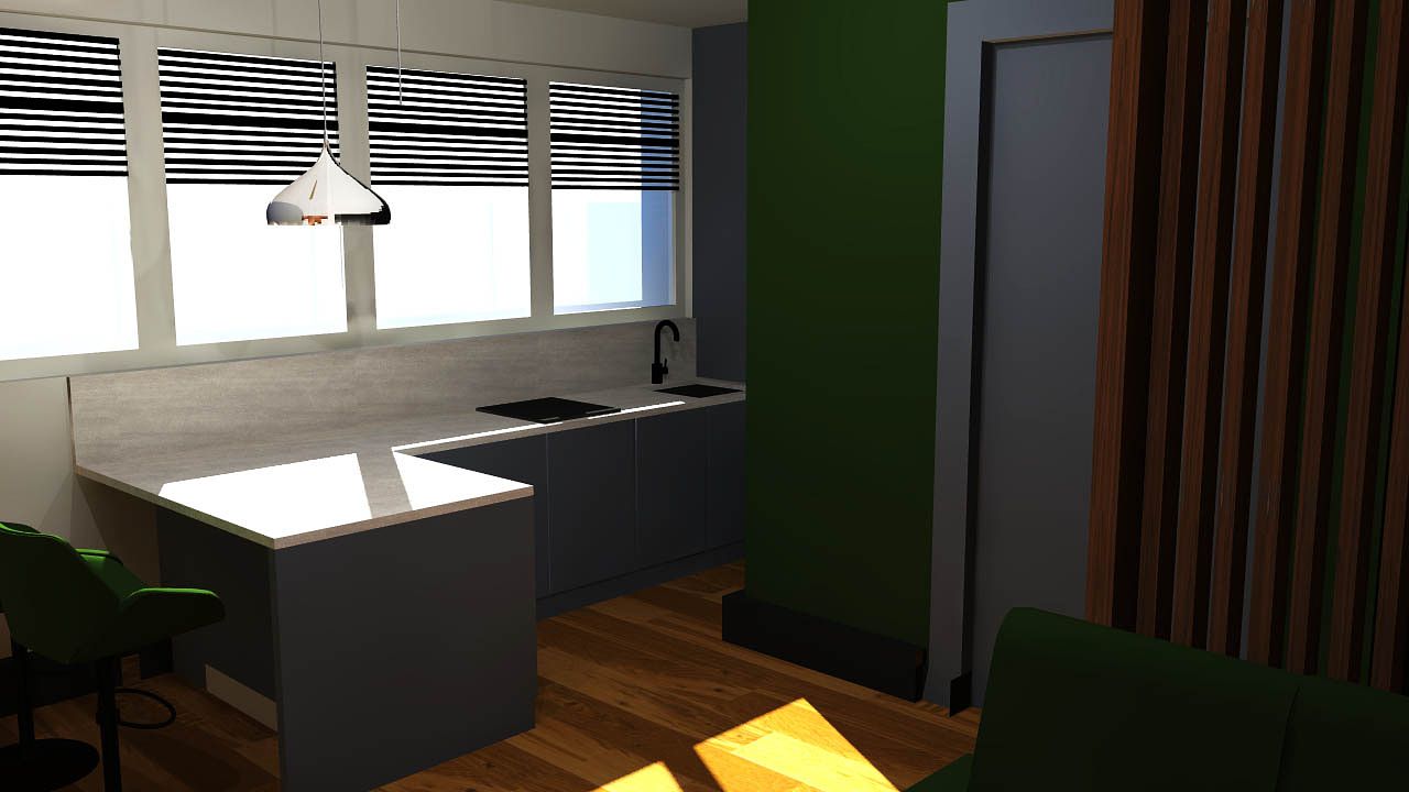 Przedstawiony projekt jest przykładem na jak mozna uzadzic kawalerke w funkcjonalny sposób. Otwarta przestrzeń zyskuje na funkcjonalności i swobodnym korzystaniu z każdej strefy wnetrza. Dużym atutem sa tu rowniez duże okna , które doskonale doświetlają przestrzeń utrzymana w dość intensywnej i nasyconej kolorystyce. Sama kuchnia mieści w sobie zmywarkę, piekarnik oraz lodówkę jak i niezbędne szafki na przechowywanie naczyń. Natomiast w salon mieści w sobie obszerna kanape z funkcją spania. Ta nie wielka kawalerka zawiera nawet biurko oraz wygodna i funkcjonalna lazienke. A to wszystko na zaledwie 25 mkw.