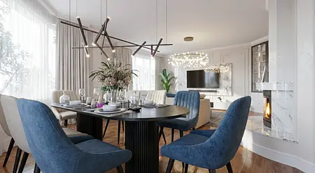 Projekt domu w Gdańśku oparty na spokojnej, naturalnej palecie barw i czytelnym układzie funkcjonalnym. Jasne tło, drewno i dopracowane detale tworzą harmonijną, uporządkowaną przestrzeń zaprojektowaną z myślą o codziennym komforcie i ponadczasowej estetyce.
