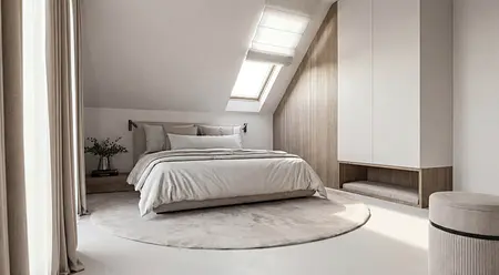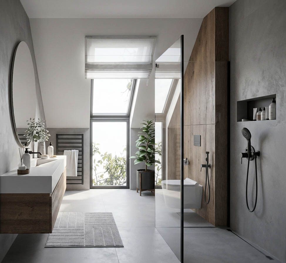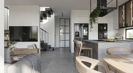 Projekt domu w Sitnie oparty na czytelnym układzie funkcjonalnym i spokojnej, naturalnej palecie barw. Drewno, jasne tło i dopracowane detale tworzą wnętrze uporządkowane, ponadczasowe i przygotowane do sprawnej realizacji.