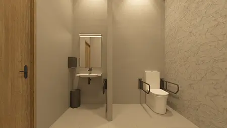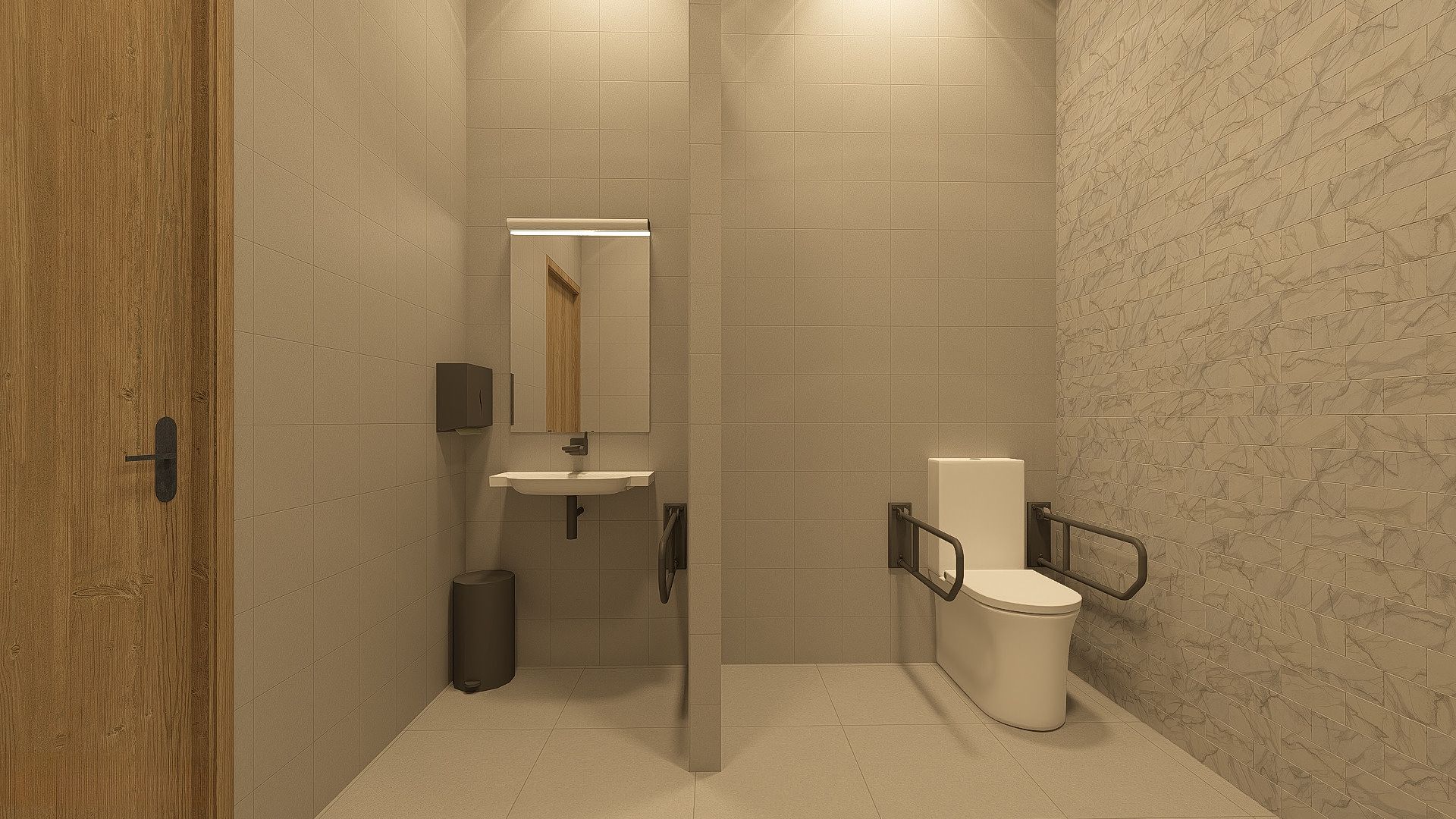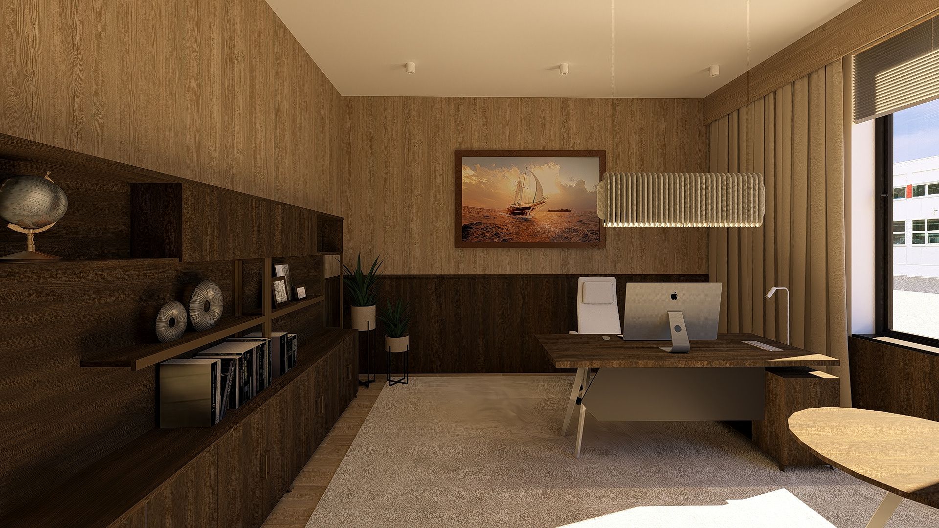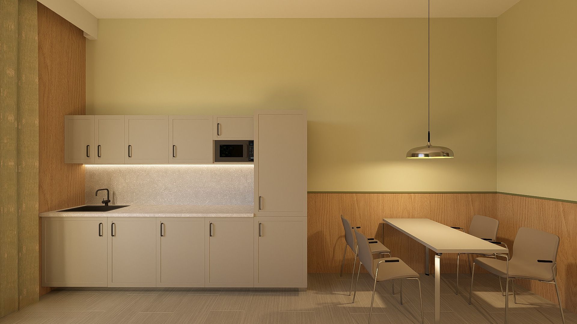 Wnętrza zostały zaaranżowane w nowoczesnym przyjaznym stylu, z wykorzystaniem ciepłych odcieni farb oraz drewna.