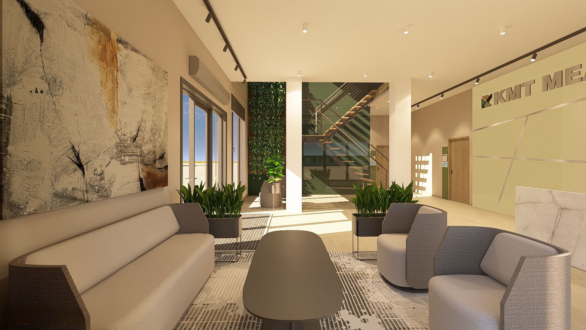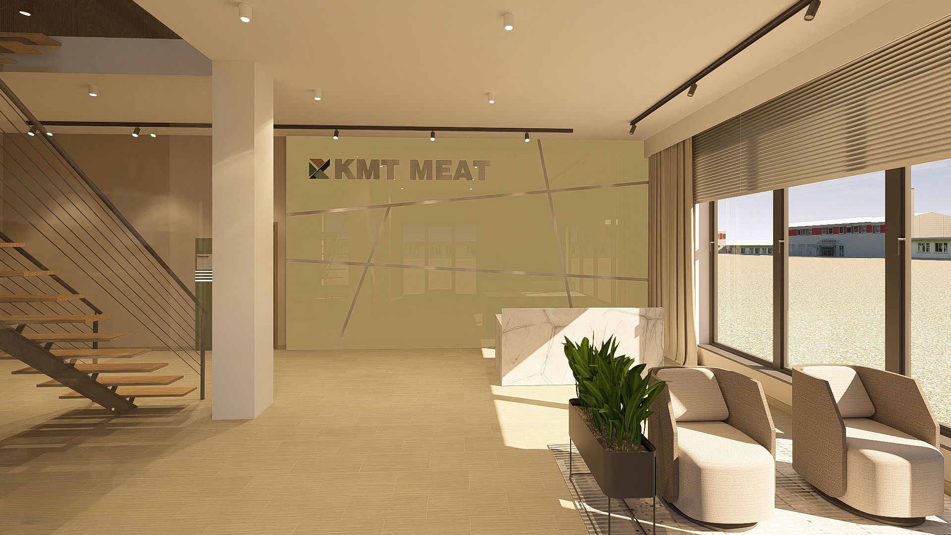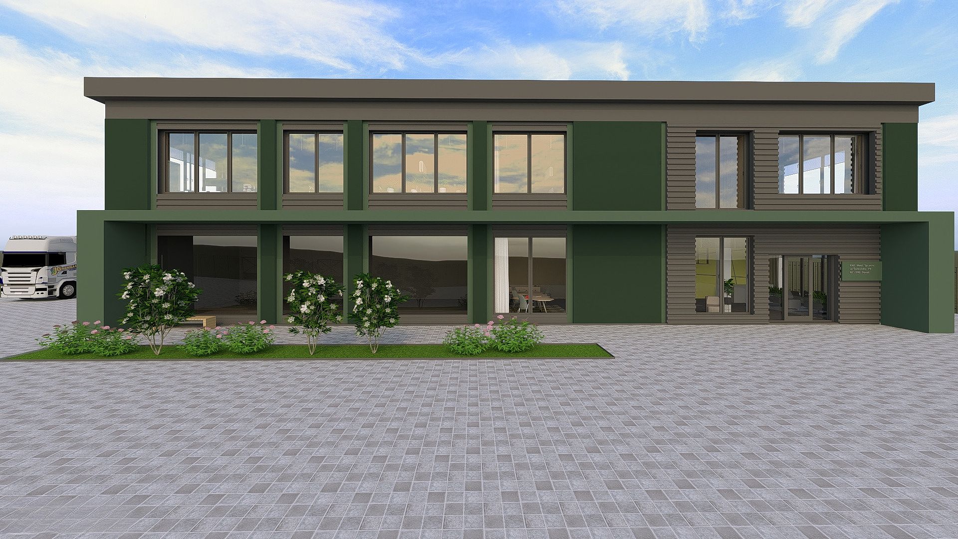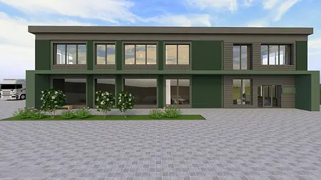 Projekt obejmował wydzielenie z hali produkcyjnej części pod biura, projekt techniczny wydzielonej przestrzeni, zaaranżowanie jej oraz projekt elewacji części biurowej.