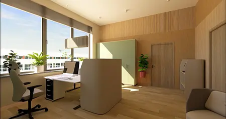 Projekt biur pracowniczych dla firmy produkcyjnej z Torunia.