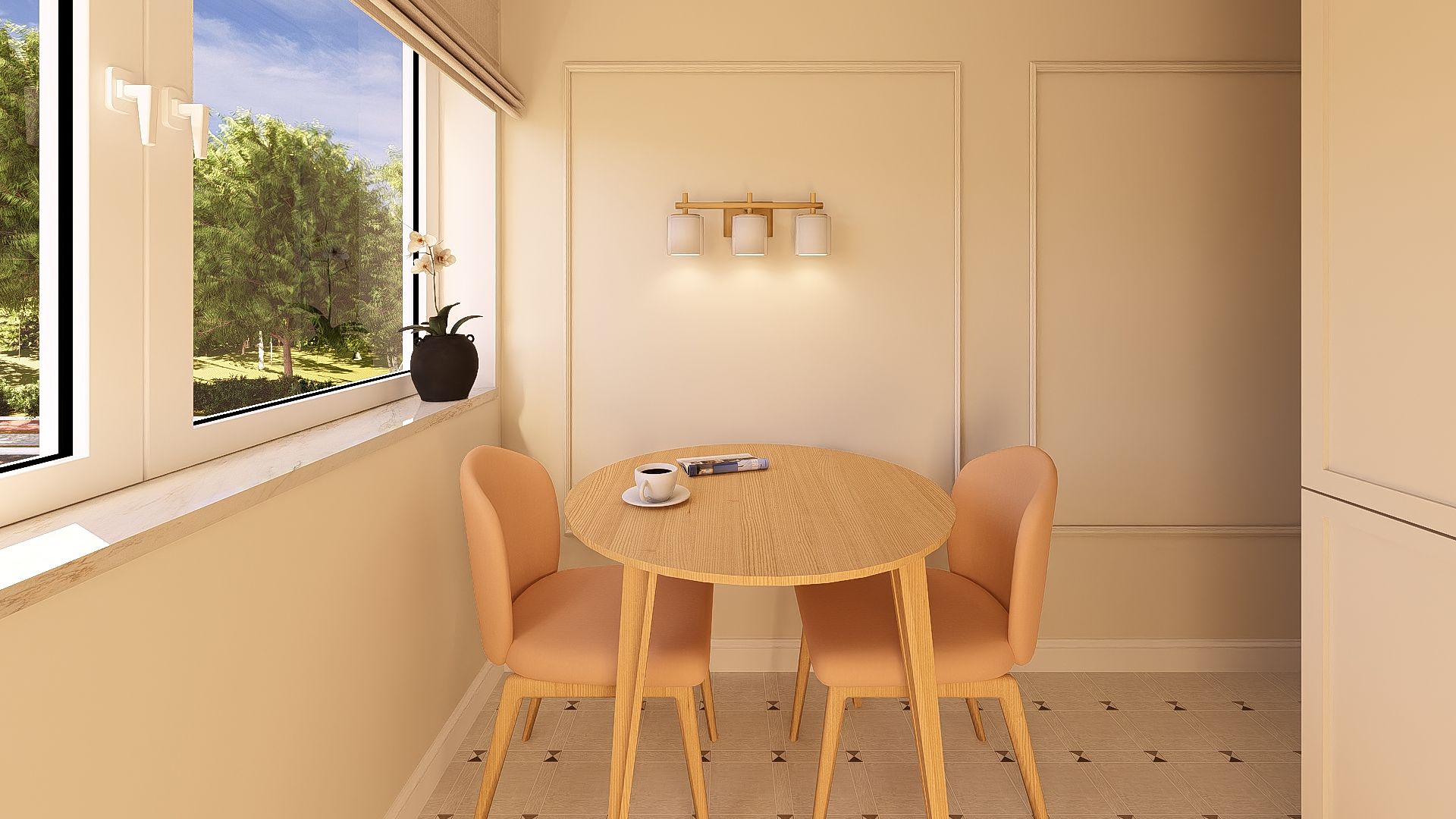 Projekt dwupokojowego mieszkania z balkonem w miasteczku niedaleko Torunia został stworzony dla kobiety.