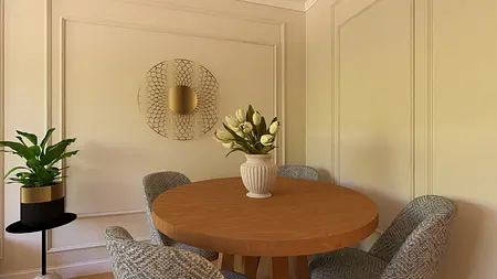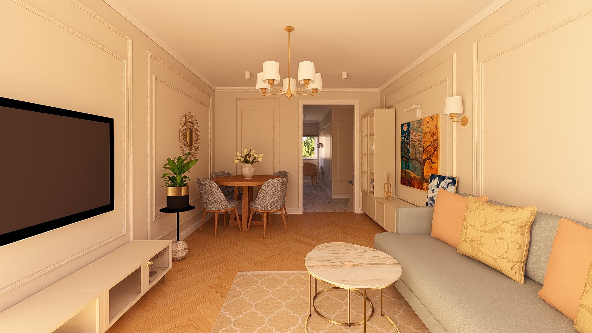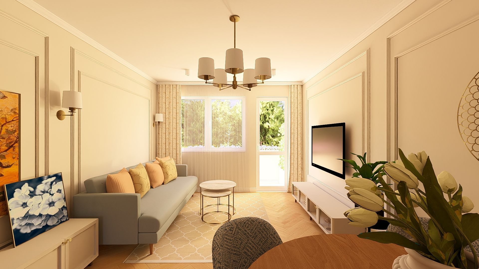 Przestrzeń mieszkania została zaaranżowana w eleganckim stylu, z nutką klasyki.