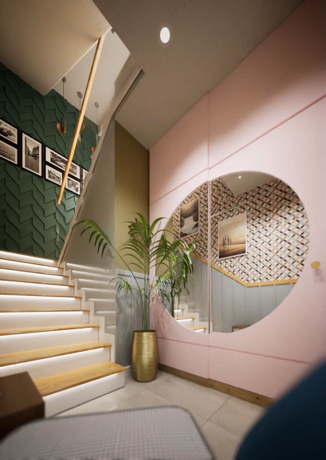 Przedpokój w stylu eklektycznym i industrialnym z ceglaną ścianą i drewnianymi schodami. 8 zdjęć w projekcie Zobacz projekt