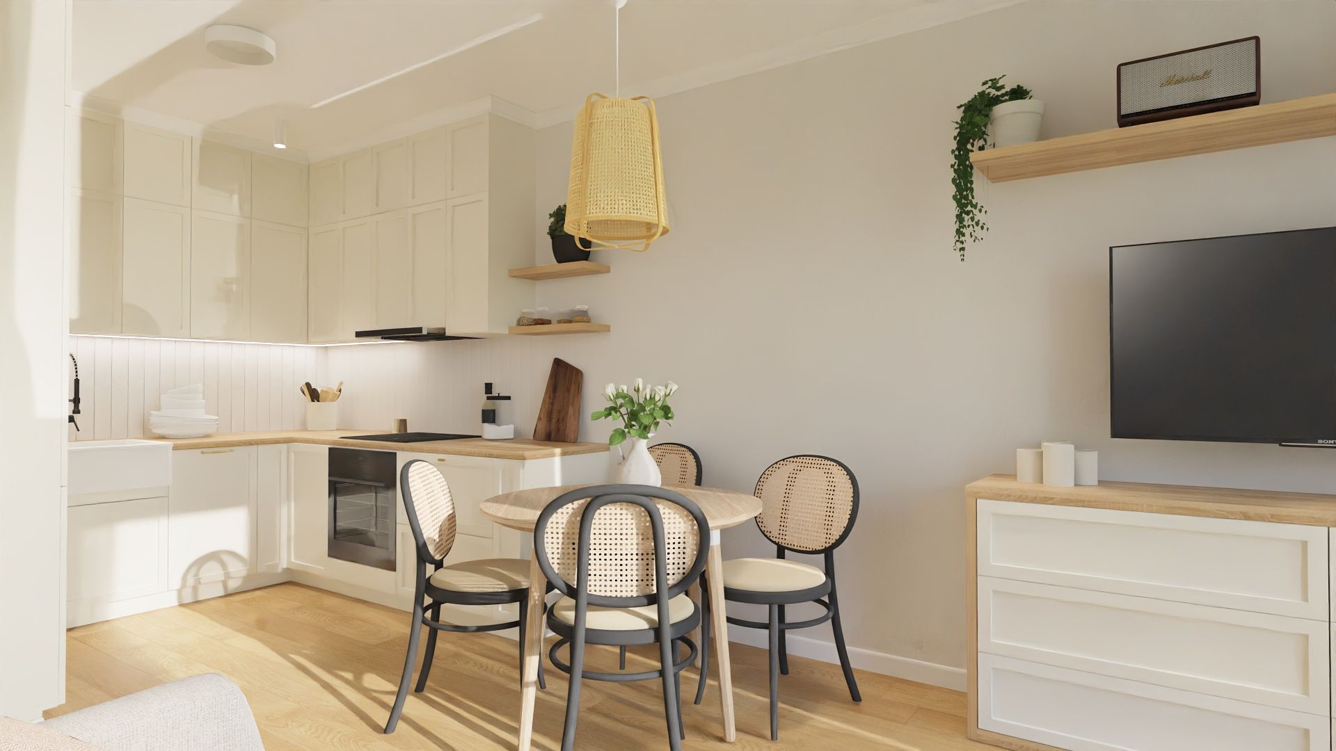 Minimalistyczna kuchnia z nowoczesnymi meblami w stylu skandynawskim i soft minimalizm. 4 zdjęć w projekcie Zobacz projekt