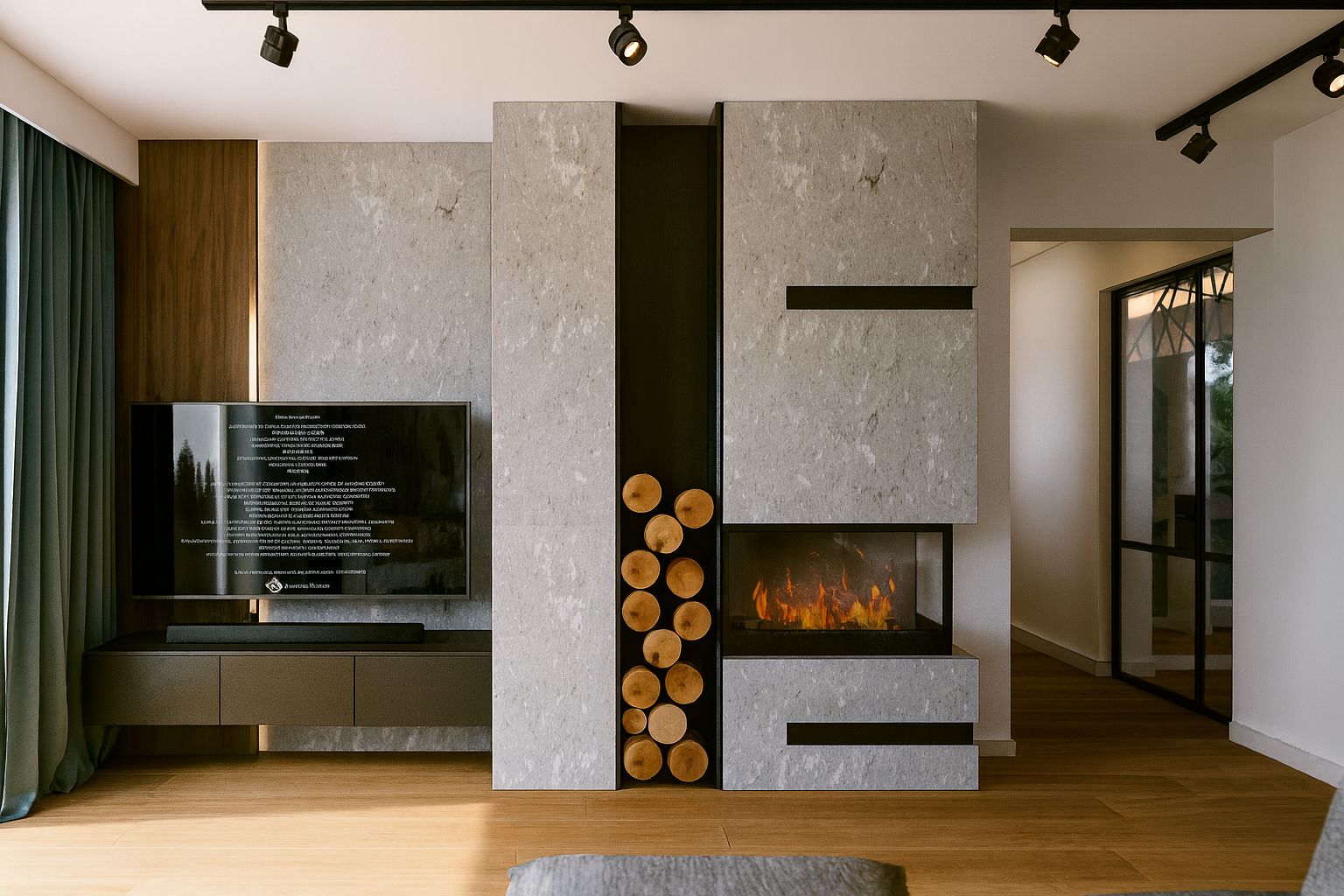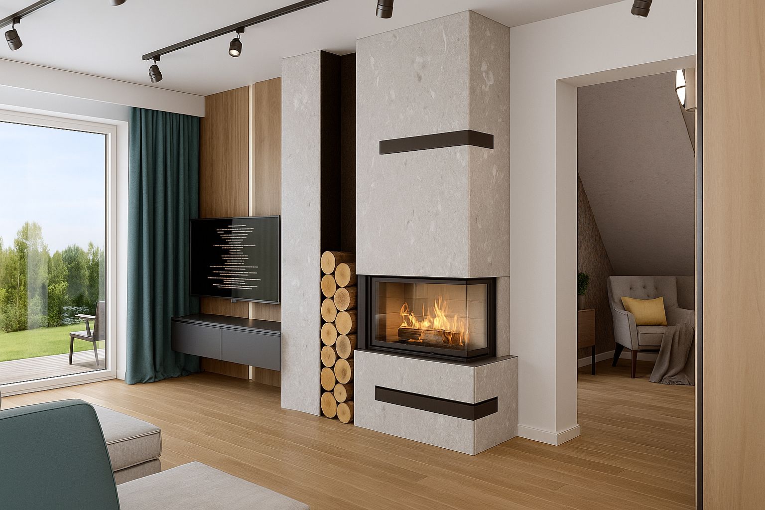 -Dokładny projekt kominka i Strefy TV