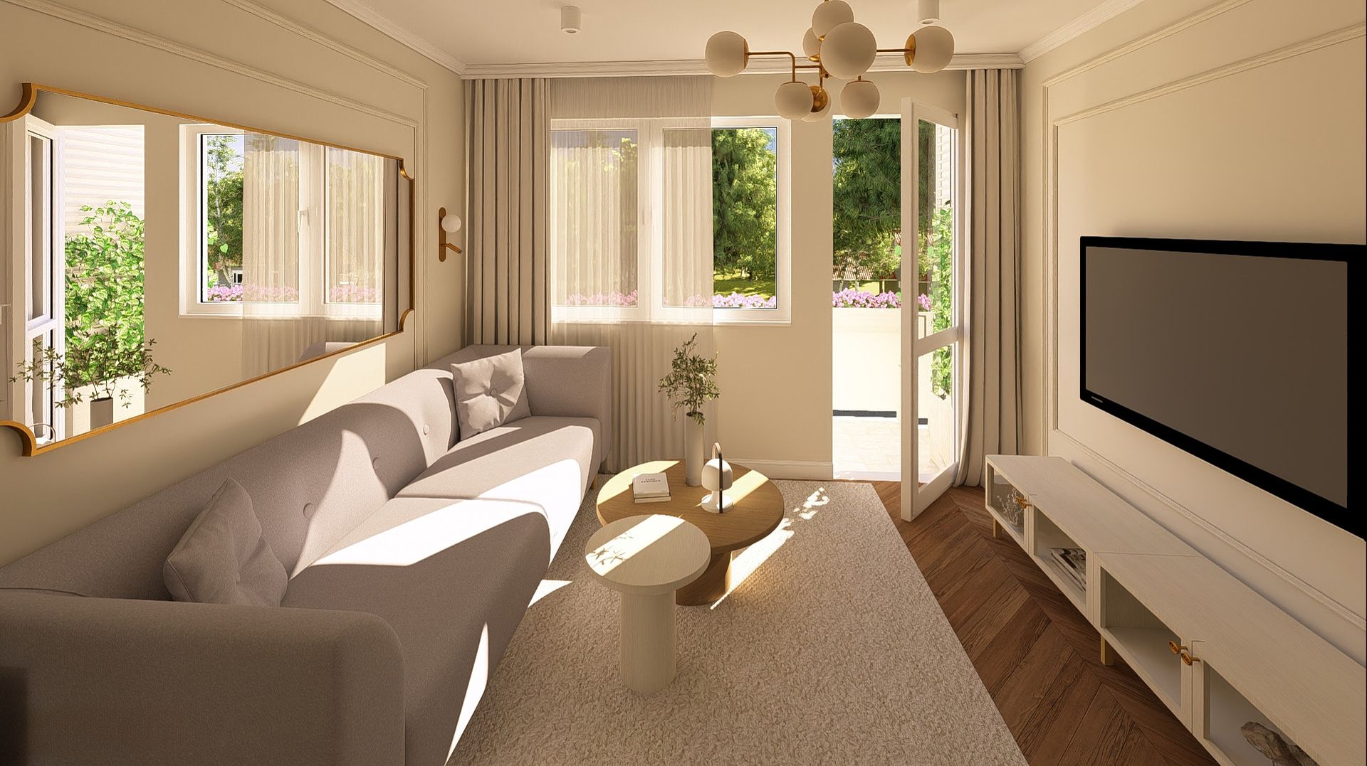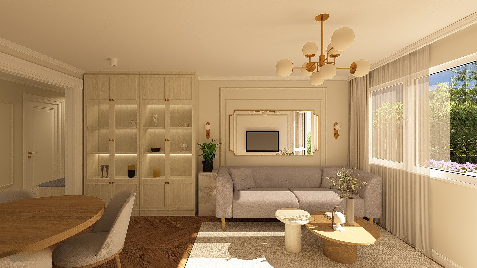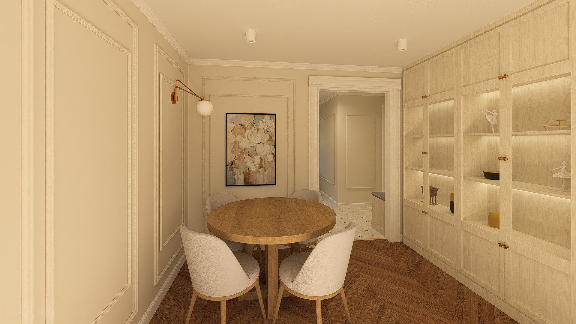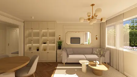Przestrzeń mieszkania została zaaranżowana w eleganckim stylu, z nutką klasyki.