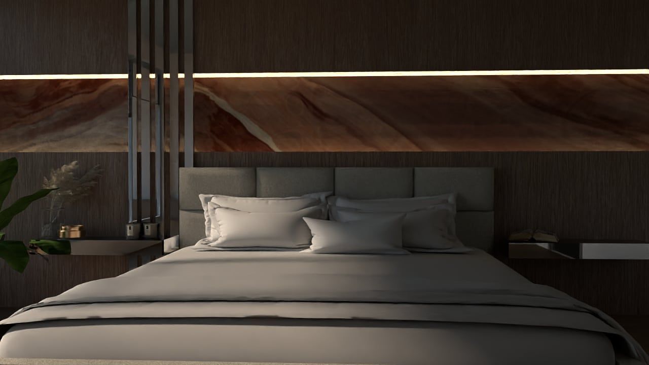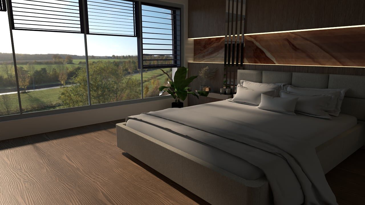 Klient chciał sypialnię jasną, spokojną i funkcjonalną, w której będzie się czuł odprężony i zrelaksowany.