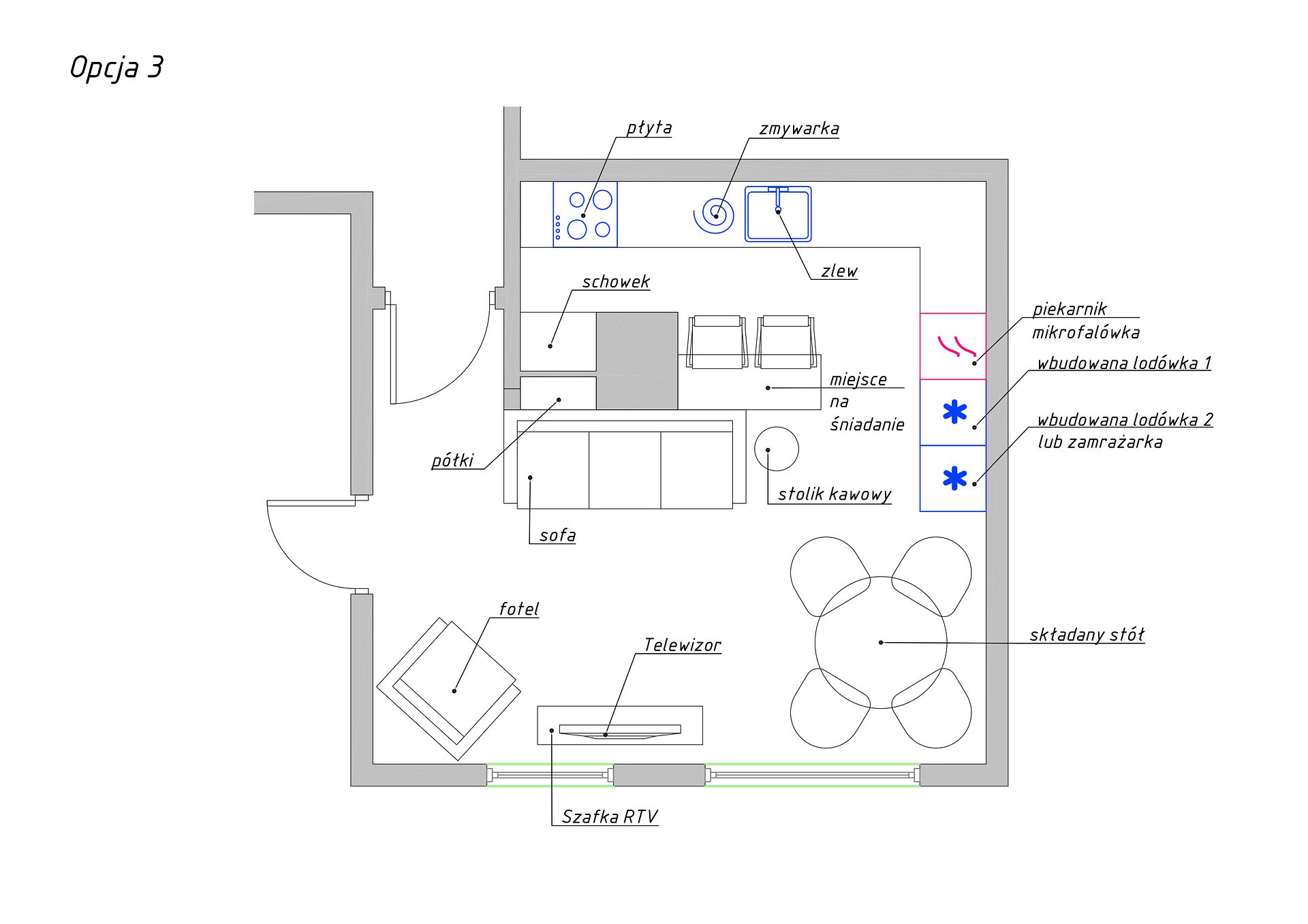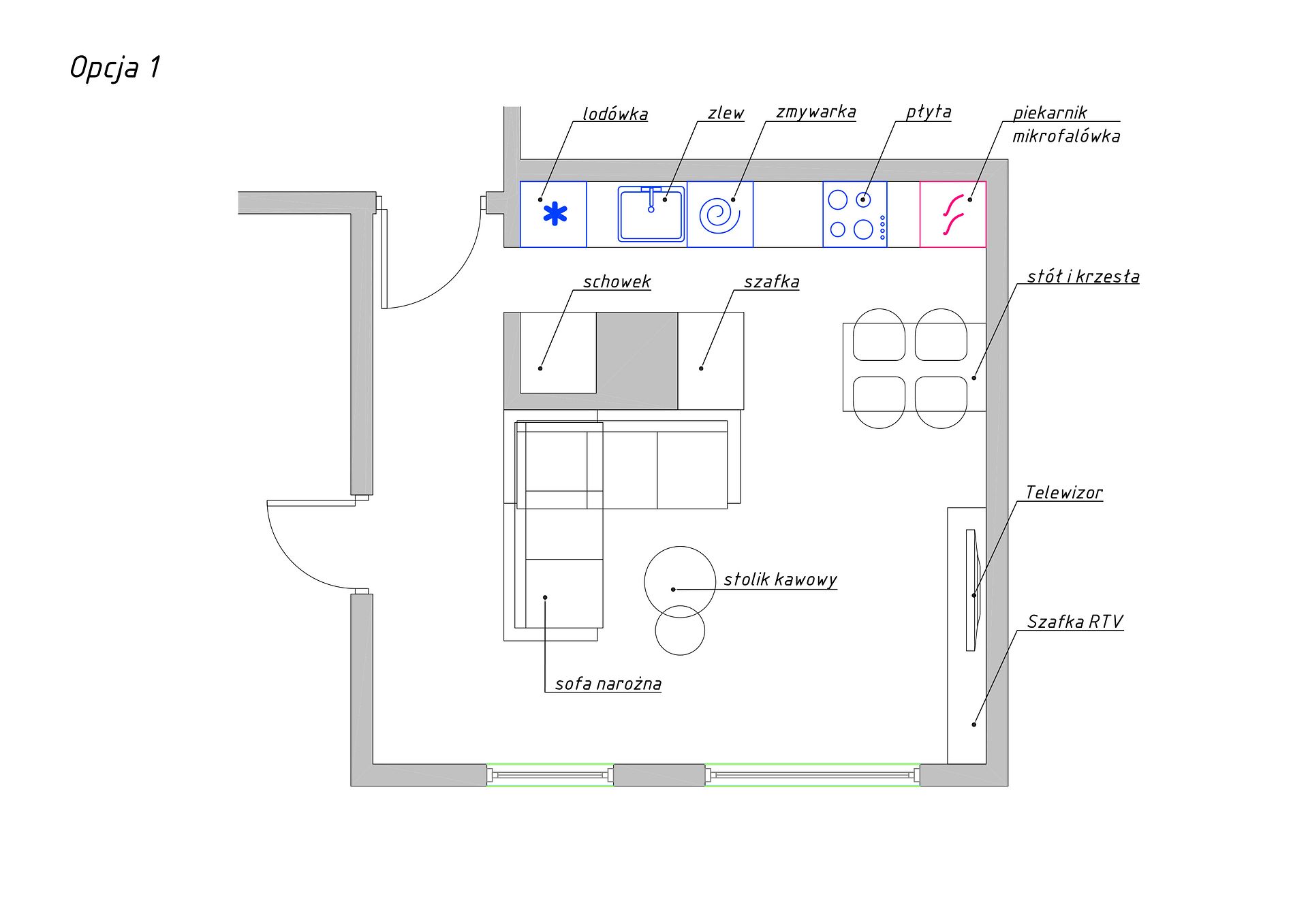 projekt kuchni, projekt salonu