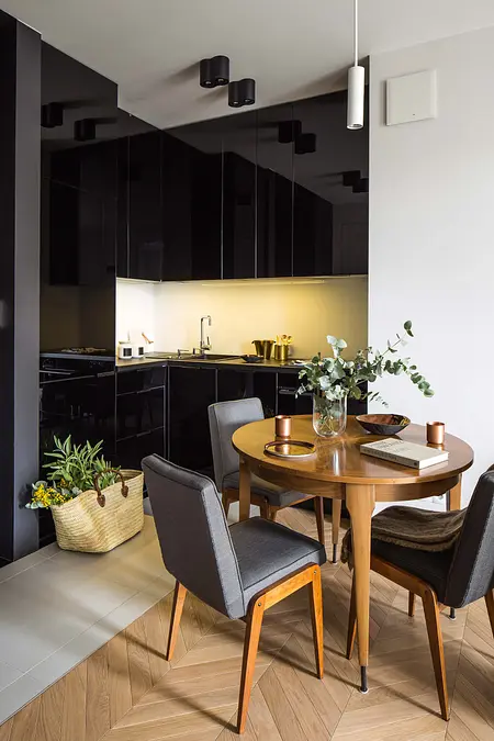 Czarna kuchnia w mieszkaniu inwestycyjnym by wedodesign.pl