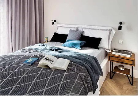 Jasna sypialnia z niebieskimi dodatkami by wedodesign.pl