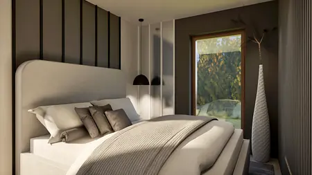Dwa różne podejścia do sypialni, jeden cel – komfort, spokój i ponadczasowa estetyka. Naturalne kolory, miękkie formy i światło odgrywające kluczową rolę w budowaniu nastroju wnętrza. Projekty stworzone z myślą o codziennym odpoczynku i harmonii.