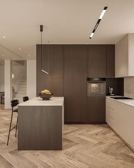Nowoczesna kuchnia w stylu japandi z drewnianymi meblami i minimalistycznym wystrojem. 8 zdjęć w projekcie Zobacz projekt