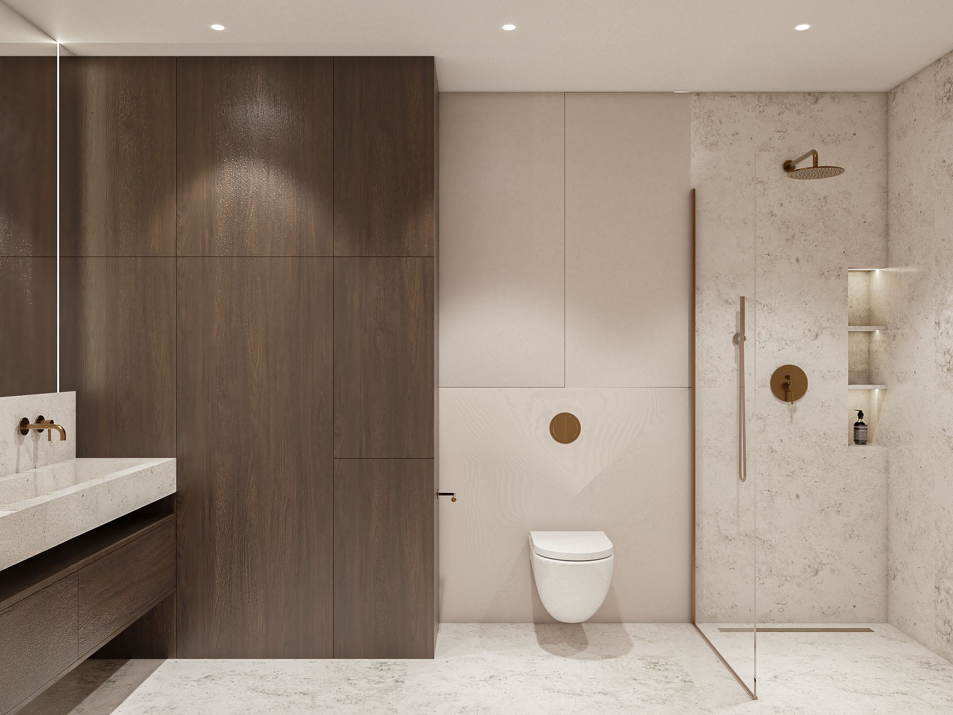 Nowoczesna łazienka w stylu japandi z drewnianymi detalami i minimalistycznym wystrojem. 4 zdjęć w projekcie Zobacz projekt