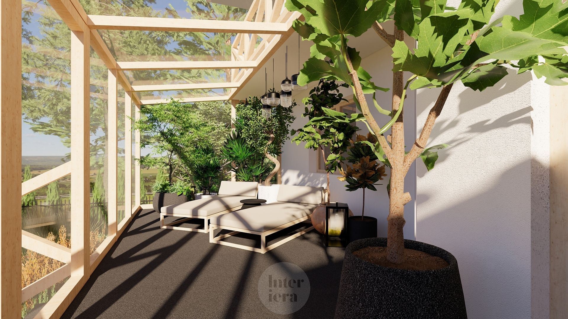 Wnętrze z drewnianymi elementami i białymi akcentami