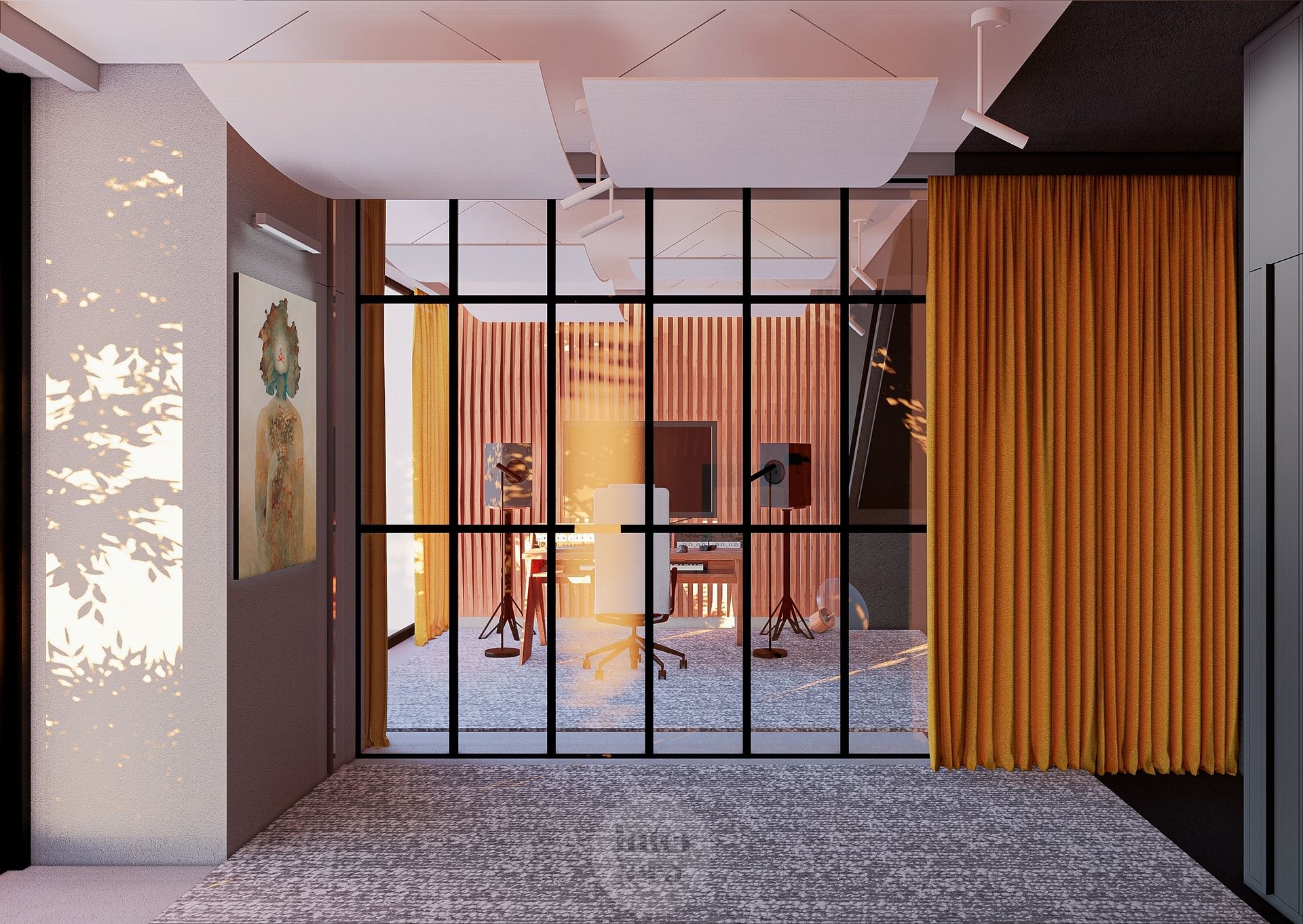 Wnętrze z dużymi oknami i minimalistycznym wystrojem