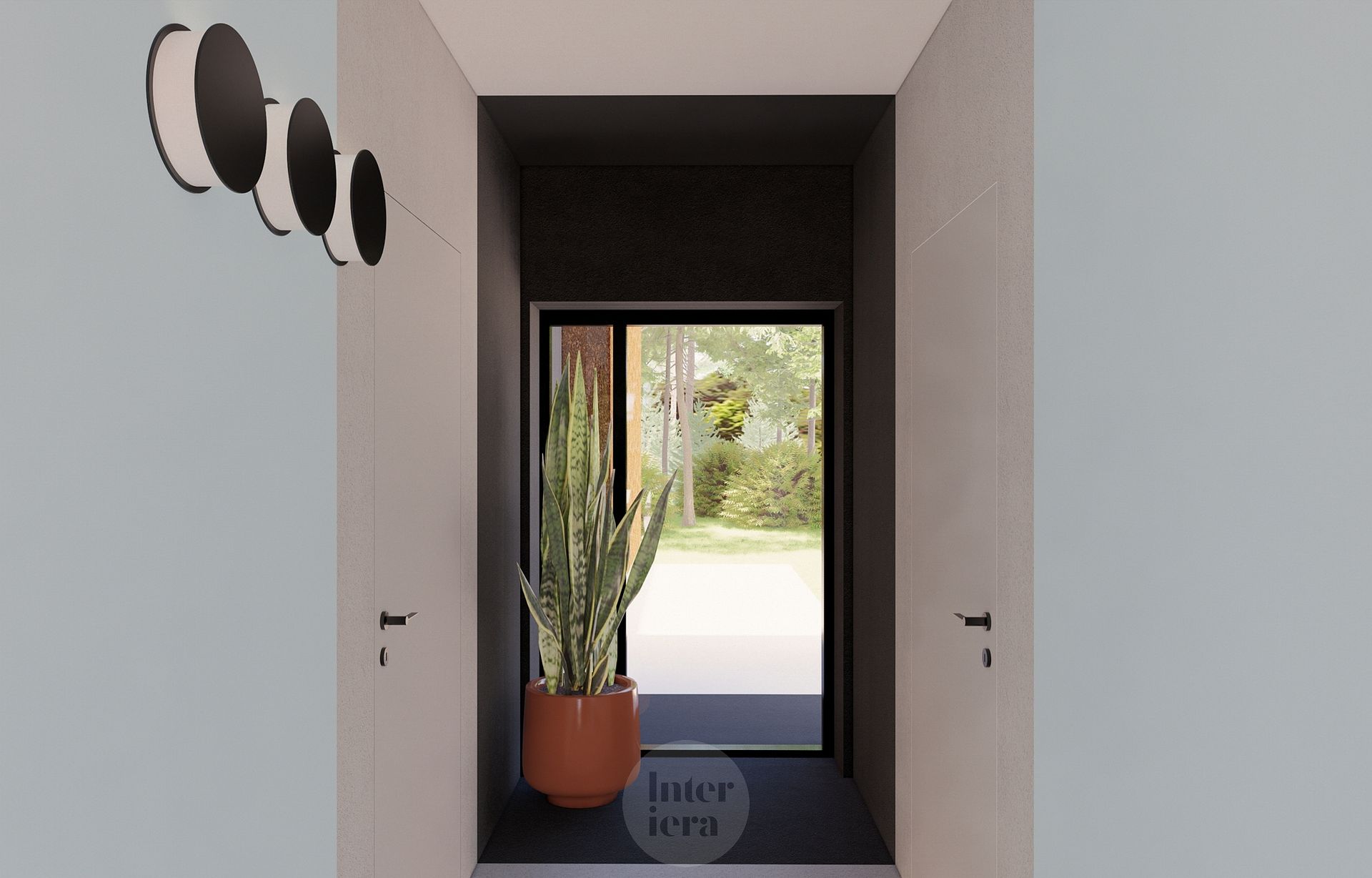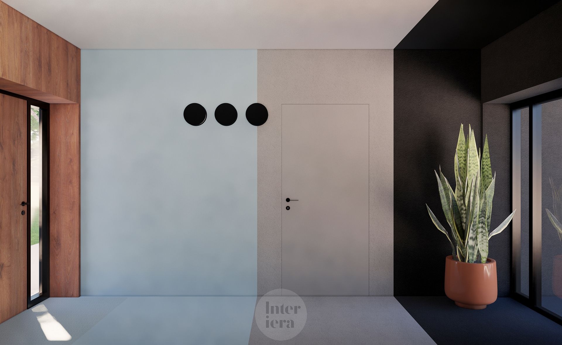 Przedpokój z rośliną i dużym oknem