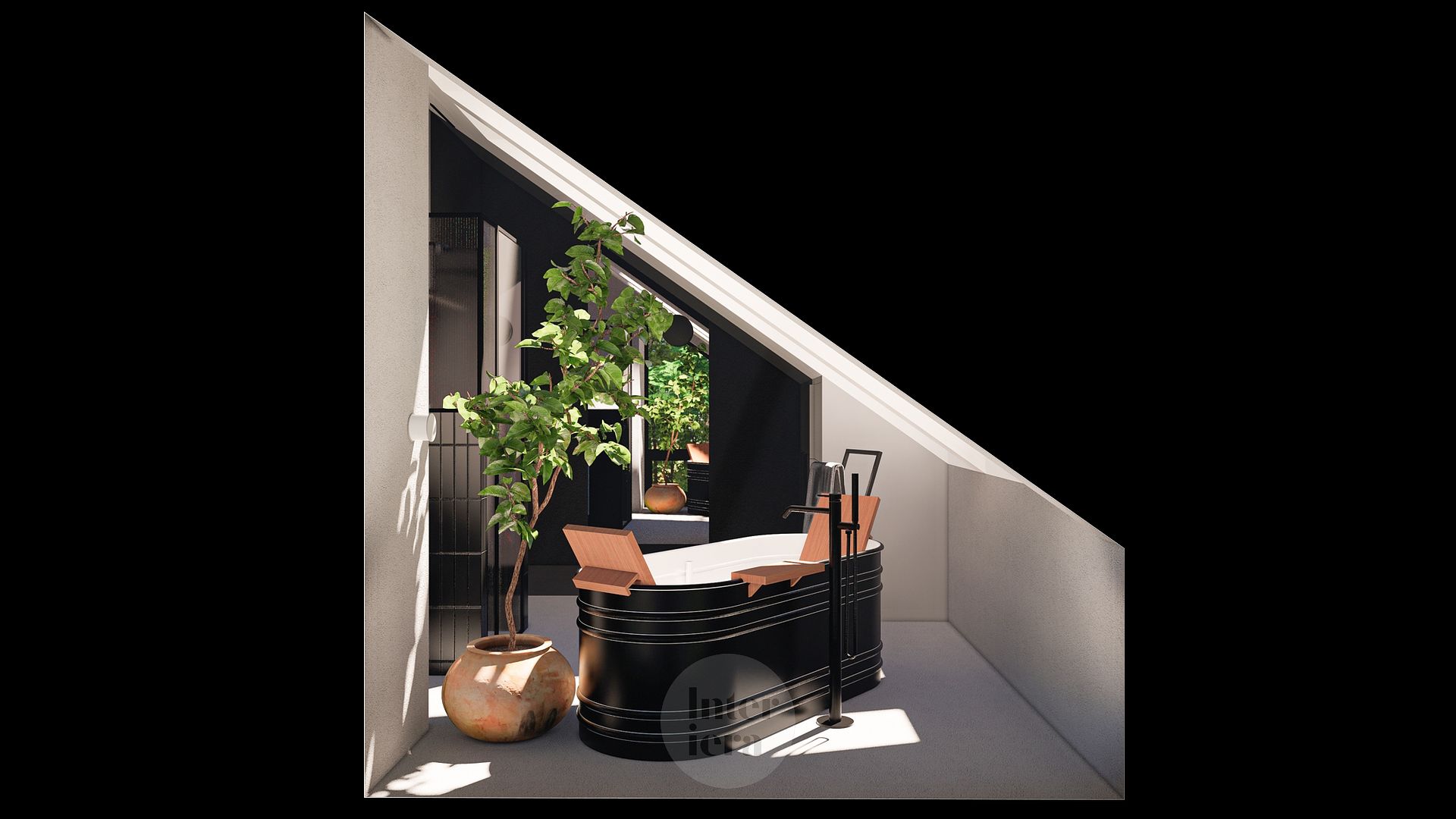 Poddasze z wanną i roślinnością
